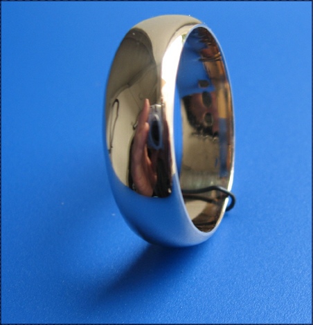 Kuvassa oikealla 7 milliä leveä puolipyöreä keltakulta-sormus, painoltaan 9,5 grammaa ja pitoisuudeltaan 14 karaattia(585).